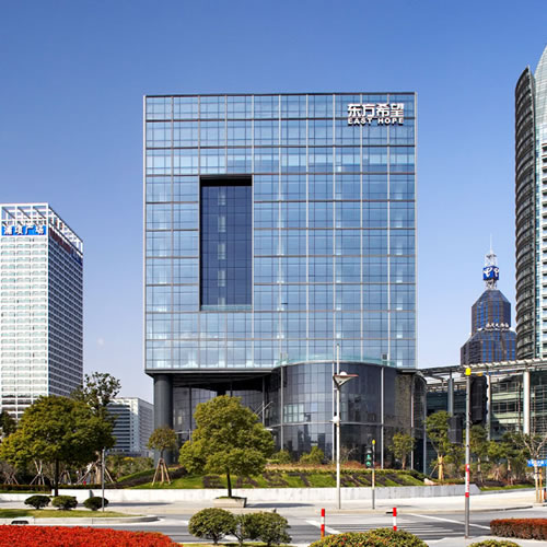 世奧大廈以“古琴”為概念進(jìn)行設(shè)計(jì),立面肌理突出“貝殼的包裹感”,是簡潔大氣的造型在交織中產(chǎn)生鮮明的對比。包裹部分以隱框幕墻為主,突出整體性。面向大海的“打開面”以“琴弦”為概念,強(qiáng)調(diào)豎向線條,是建筑呈現(xiàn)挺拔、俊朗的風(fēng)格。
