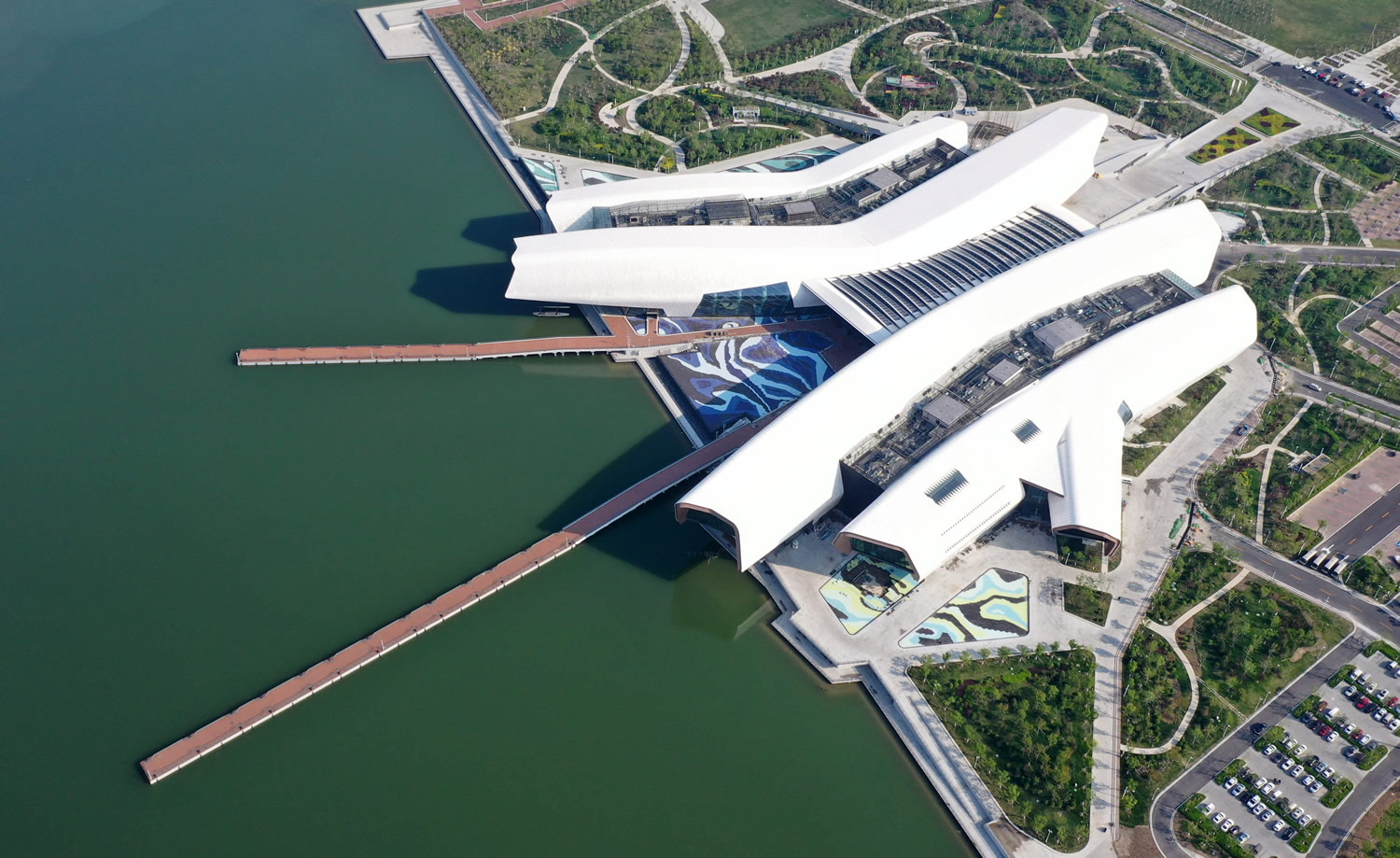 國家海洋博物館位于天津濱海新區(qū),占地面積30萬平方米,設(shè)計范圍東西長約2.8公里,水面南北寬330-600米,綠地面積約66公頃,總水面面積約79公頃。國家海洋博物館項目的設(shè)計靈感來源于“張開的手掌、海星、鯉魚、?⒏劭谥械拇、白色珊瑚殼”等與江河湖海有著密切聯(lián)系的事物。