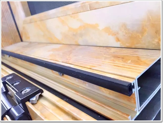看型材表面與密封條的接觸面是否出現(xiàn)污損變色,密封條的表面的塵土是否發(fā)黃(有油很容易吸土)滲油,是否沾手臟手。