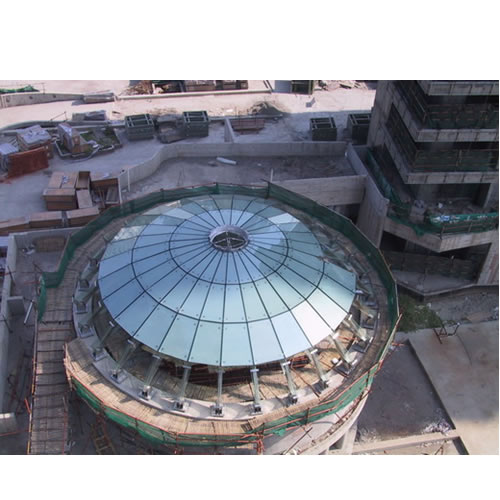 國際館挺起脊梁,正在進行“蒙膜”施工