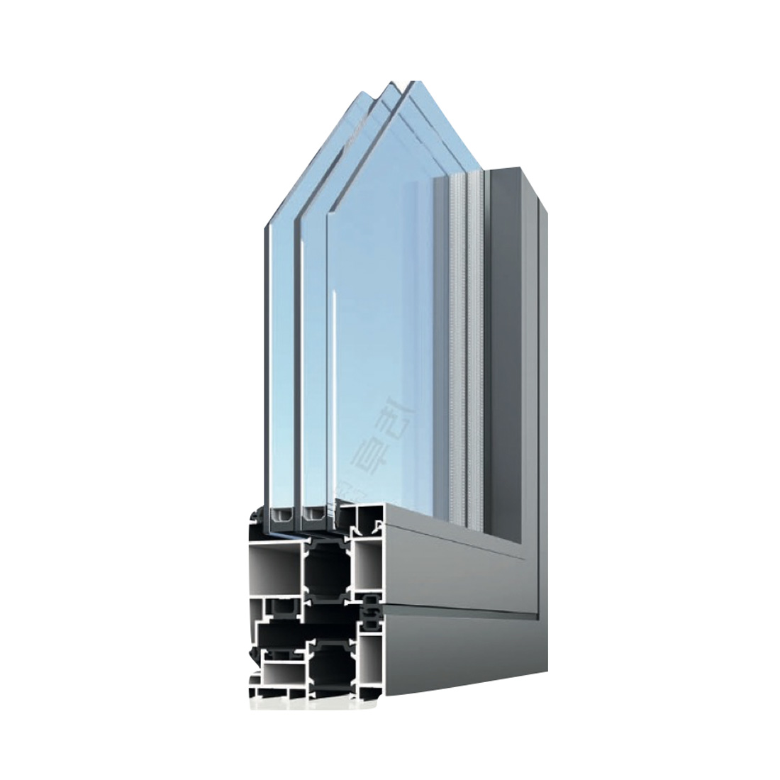 除以上四種形式構(gòu)造作為解決方案外,為滿足不同使用場景需求還可以將以上四種構(gòu)造形式組合使用,例如空腔型材設(shè)計(jì)加保溫材料等,用于被動式建筑中鋁包木門窗的木型材。
